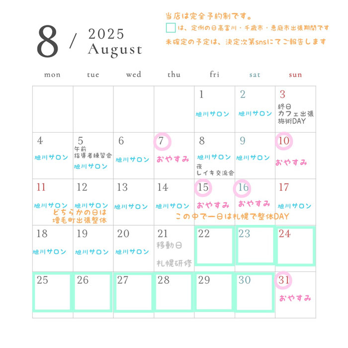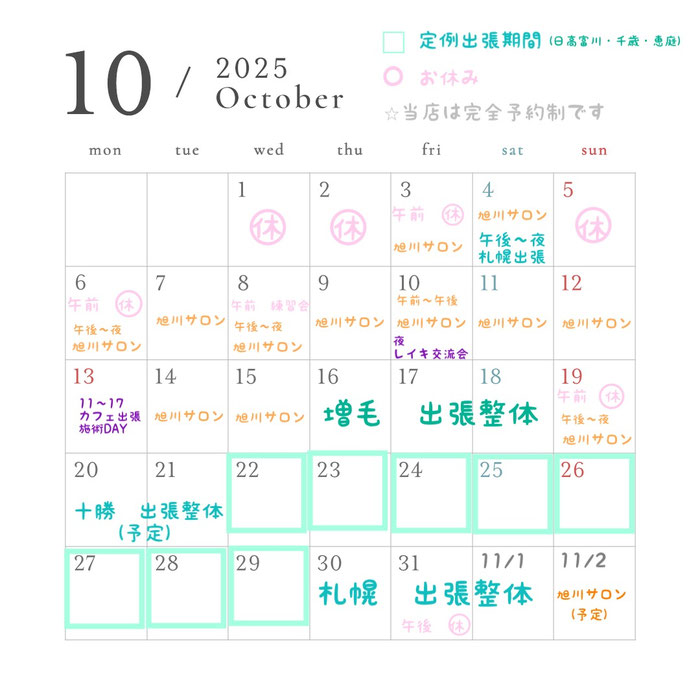 はっきりしないスケジュールがありますが、ご予約の時はお問い合わせください♪