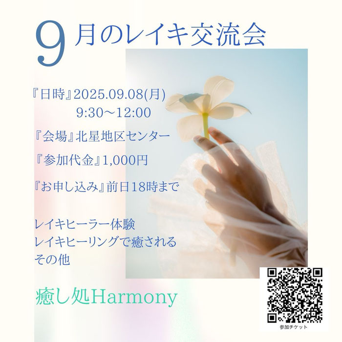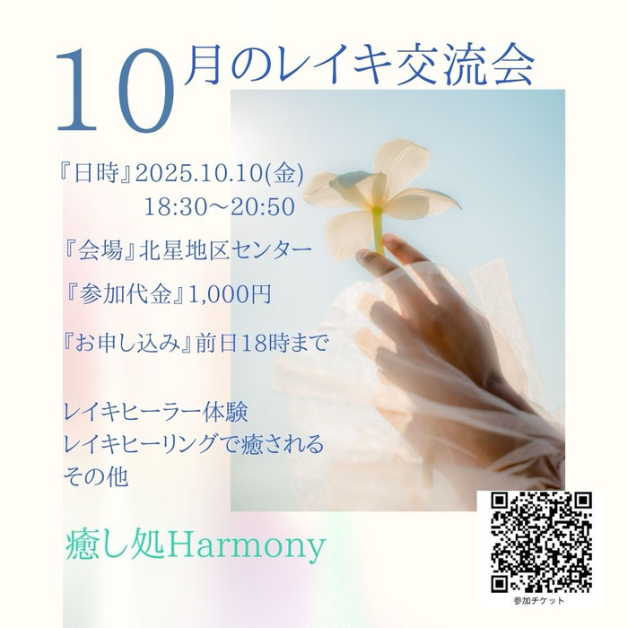 ★次のレイキ交流会は、2025年10月10日の夜の開催です。